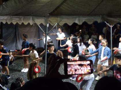 10月26日(土)の原谷にある弁財天で、運動会で4年生が披露したエイサーを踊りました。希望者だけの参加でしたが、かっこよく踊ることができ、大きな拍手をもらっていました。雨が心配されていましたが、奇跡的に子どもたちが出演するときには雨は止んでいました。すごい!