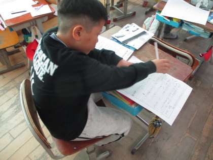 いろいろなものに変身する食べ物があります。「すがたを変える大豆」の学習で学んだ文章の構成を生かして、自分が調べた食べ物の秘密について、作文しました。一生懸命に取り組む姿がとても素敵でした。