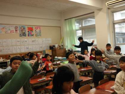 一年生は毎朝,朝の会で歌を歌うことにしています。子ども達が好きなのは,手話付きの歌【虹】です。当初は,ぎごちなく,恥ずかしそうにしていた手話も,今では堂々と,大きな動作になり,みんな笑顔いっぱいで楽しく歌えています。見ているこちらも,思わず笑顔になるほどです。