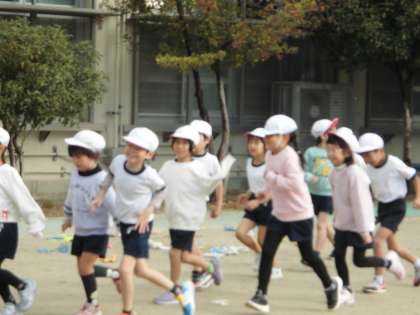 今日は,グランドコンディションも悪く,今季一番の寒さもあったので,体育は学年全員で【ゆっくり駆け足】をしました。先頭の人を抜かさないように,最後まで同じペースで走り続けるという約束で走りました。最初はクラス全員で,次はグループ毎に,次はペースメーカーを決めて,それぞれ2分間ずつ走りました。走り終わるころには,みんな身体がポカポカしてきたようです。最後は,なわとび遊びをして,しっかり汗をかきました。