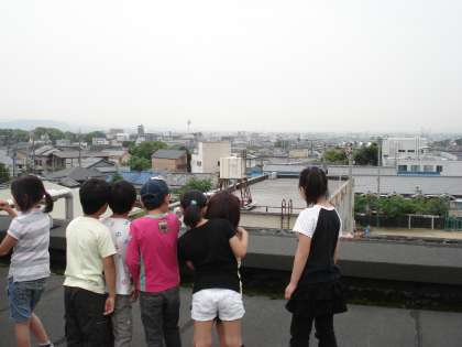 普段は上がることに出来ない屋上に上がった子どもたちは,それだけでワクワクドキドキでした。