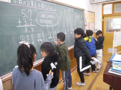 三年生の算数の学習では、小数の学習に入っています。今日の学習では、たし算とひき算の筆算の練習をしました。それぞれが集中してよく頑張っていました。