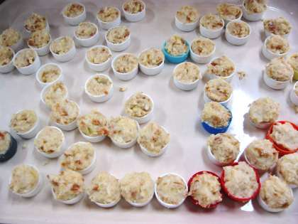 次に,タマネギを荒くみじん切りにして,さっくりとパン生地と混ぜます。