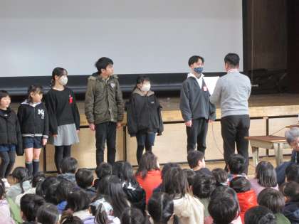 2月の朝会がありました。以前児童会の子どもたちが、わたしのところにお願いごとを言いに来ました。この朝会でその回答を伝えました。子どもの希望通りになったことは、