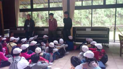 花背山の家から、歩いて約1時間かけて山を越えて、百井青少年活動村(百井キャンプ場)へ移動します。