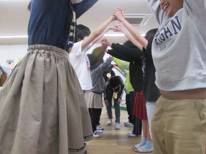 北下支部の合同お別れ会が京都教育大付属小中学校で行われました。金閣小学校からは3名の6年生がみんなからお祝いしてもらいました。ダンスがあったり歌があったりととても楽しい時間でした。