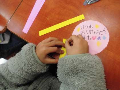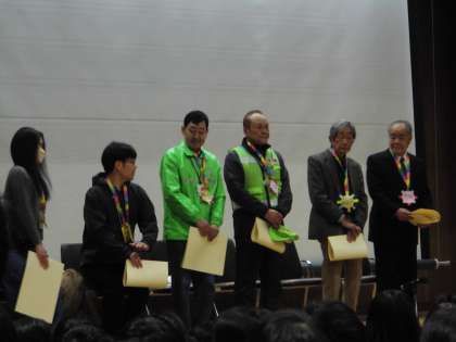 今日は,日頃お世話になっている見守り隊の皆様への感謝の会がありました。校長先生,六年生の挨拶に続き,メダルが贈られたのですが,そのメダルを見て一年生の子ども達は,「あっ,僕達が作ったメダルや」と少し誇らしげでした。校長先生から【感謝】の気持ちを表すにはどうしたらいいかというお話がありましたが,一年間お世話になった人々への感謝を言葉と態度できちんと言える子どもになってほしいと思います。