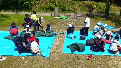 ふかふかになったシュラフをたたみ、テントも撤収して、いよいよ百井キャンプを出発です。昨日はお風呂に入っていないので、山の家に帰ったら一番に入浴です。