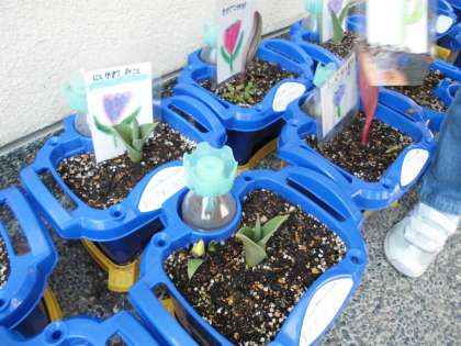 教室の壁面飾りも,昨年の秋に球根を植え大切に育ててきたチューリップも,すっかり春の準備が整い,新しい春を今か今かと待ちわびています。