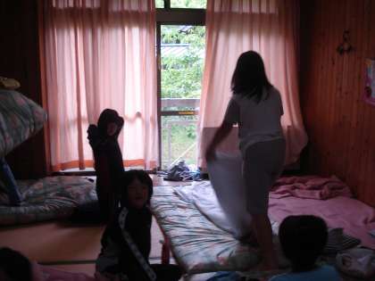 今日は最終日です。6時に起床し、洗面をした後朝の集いまでの間に布団の片付けとシーツをたたみます。