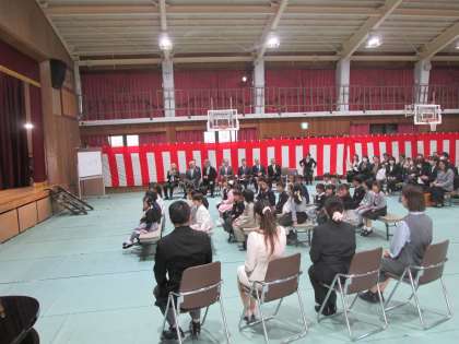 35名の1年生が入学しました。にじのこ学級、1年い組の2クラスです。1年生はドキドキをしながらも、しっかりとした態度で入学式に参加できました。お話もしっかり聞くことができていました。