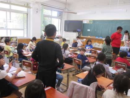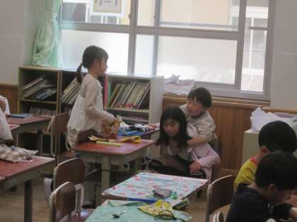 給食終わりあたりに1年生の教室をのぞいてみると、なんと6年生が1年生の教室にお手伝いに来ていました。給食を食べ終わって後片付けをするところや、後片付けが終わった後の帰りの用意などのお手伝いです。6年生は優しい笑顔で1年生に接していました。素敵な6年生です。