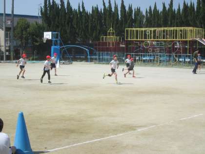 新体力テストが始まっています。どの学年も体育の時間に行っています。今日は3年生がシャトルランをしていました。持久力を測るテストです。音楽に合わせて段々速く走っていきます。最後一人の子どもが一生懸命走っていて、みんなで応援していました。感動的な場面でした。素敵な3年生です。