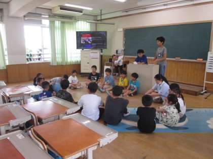 1学期最後のたてわり活動でした。大変暑かったので、全員教室で過ごすことになりました。6年生はいろいろな遊びを考え、下学年に伝えていました。楽しく遊んでいる姿を見て、嬉しそうにしている6年生の姿が素敵でした。