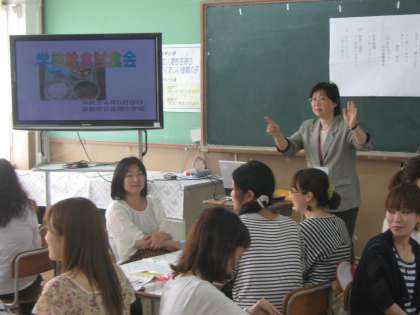 今年度新しく整備したランチルームで、給食試食会を実施しました。栄養教諭より、学校給食の目標や献立ができるまで、給食の役割の移り変わりなどについてお話をさせていただいた後、実際に保護者の方に給食を食べていただきました。
