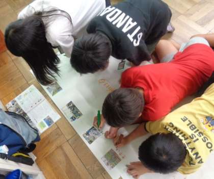 「鹿児島県で水産業に関わっている人々は、どんな工夫や努力をして魚をとり、私たちのもとに届けているのだろう」という学習問題の解決に向けて、教科書やICTを活用しながら調べ、分かったことを協力しながらまとめています。