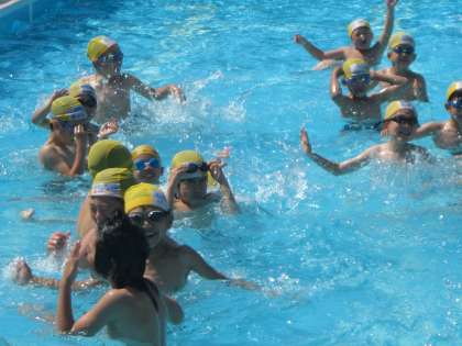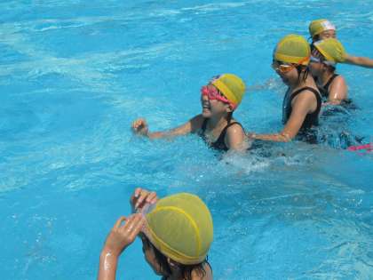 今日は朝から雲ひとつないような快晴です。まさしく「梅雨の晴れ間」です。朝から3年生がプールに入っています。プールの中で、準備体操もかねて、とっても楽しそうに踊っています。みているこちらまで一緒におどりたくなってしまいそうです。今日のプールはとっても気持ちがよさそうで、うらやましいです。