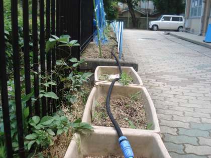 また,花壇にも児童で水やりができるように,散水ホースもつけました。