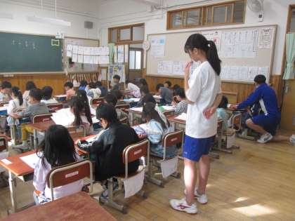 今日から4日間中学生がチャレンジ体験という職場体験に来てくれています。先生という仕事の体験です。緊張しながらも優しく子どもに声をかけるなどの姿がありました。これから先生の見方が変わるかもしれませんね。