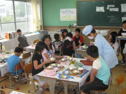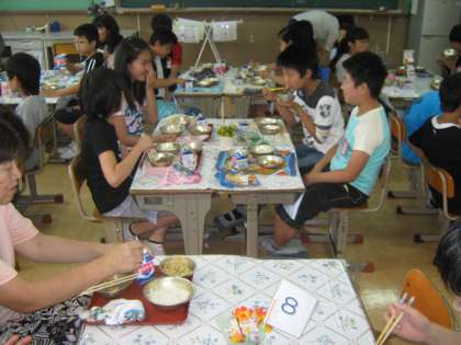 いつもとちがう雰囲気の中で味わう給食はやっぱりひとあじ違います。それぞれの学級が一度ずつ使用したら、次からは食や栄養に関する指導も少しずつしていく予定です。