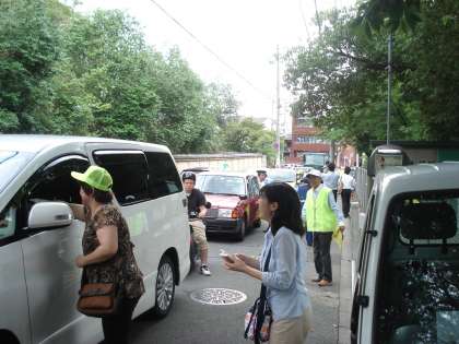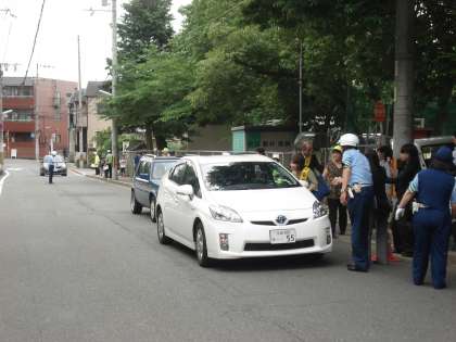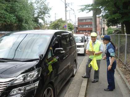 児童の通学路で通行車両に,安全確保のお願いのビラを配布し,安全通行へのご協力のお願いをしました。