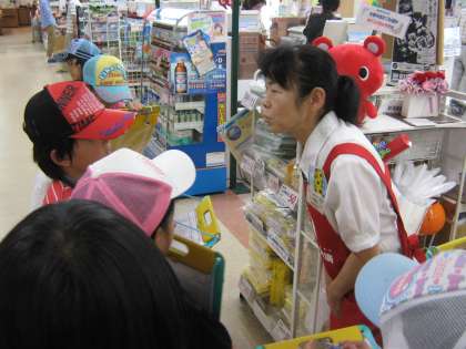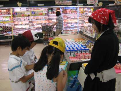 また、「スーパーマーケットには、たくさんのお客さんが買い物に行く工夫が隠されているはずだ」と感じた三年生は、スーパーマーケットの工夫を自分たちで考えました。