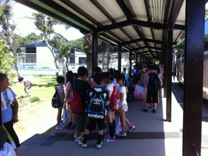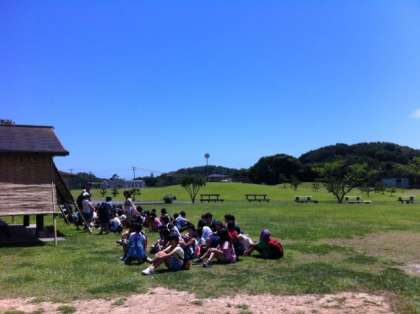 12時30分ごろに、みさきの家に到着しました。雲ひとつない晴天で、海を渡る風がとてもさわやかです。先にお弁当を食べてから、入所式にする予定です。