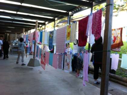 浦山ラリーが済んで、4時30分からお風呂の時間です。ひとクラスずつ入浴するので、待っている間に寝る準備をしたり、水筒を洗ってかごに並べたりします。バスタオルを干すのも、もちろん自分でします。