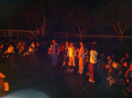 係りやクラスごとの出し物をしています。炎に照らされている子ども達の顔は、今日1日の活動の充実感で、いきいきと輝いてみえます。