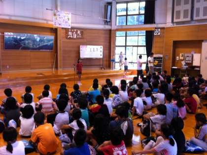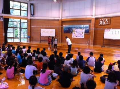 いよいよみさきの家ともお別れです。最後にプレイホールで退所式をしています。お世話になったみさきの家の所員の方々、ありがとうございました。楽しい思い出がいっぱいできました。これから船に乗って、賢島にあるマリンランドに向かいます。