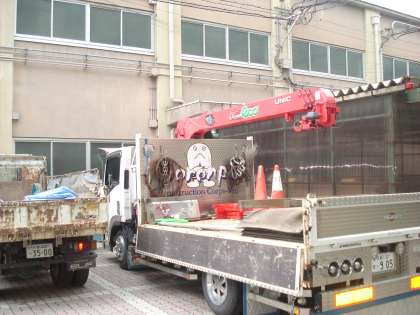今日から工事車両が続々入ってきて,資材の搬入が行われています。