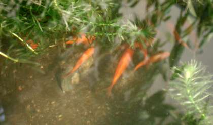 小さなカワイイ金魚がたくさん池にいます。