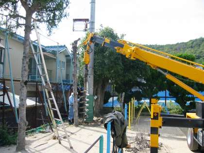 大きなドリルで,一気に穴が空く様子を子どもたちもすこしは慣れた遊具の上から見ていました。
