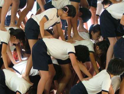 特に6年生の組み体操は,どんどん演技の内容が伝えられていく中みんなで力を合わせてクリアーしていっています。