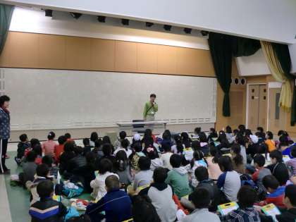 お話していただくことになっていた横田さんが,気持ちのよいあいさつで出迎えて下さいました。