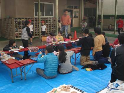 6年生はとても上手に火をおこし,4.5年生は,手際よく食材を切っていました。