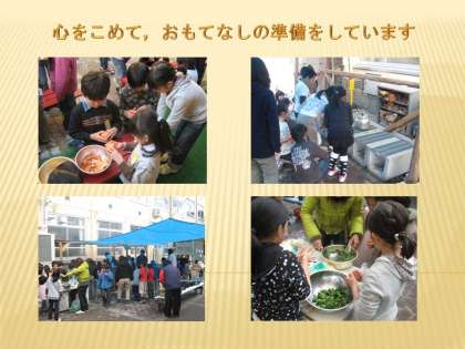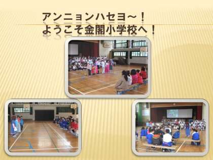 10月には金閣校の子ども達が京都朝鮮初級学校に出かけて交流をしました。今日は京都朝鮮初級学校が金閣校に来てくれての交流です。3年生の子ども達は、朝から大はりきり。セントラルガーデンで、ごはんを炊いて、すいとんとナムルを作ってのおもてなしです。講堂では、森林教室で学んだことの発表や、学習発表会での歌や合奏などを見ていただきました。そのあとは、教室でいっしょにお昼ごはん。とっても楽しい時間を過ごすことができました。金閣校の校区内にある京都朝鮮初級学校のお友達。もっともっとお互いに仲良くなることができるといいですね。