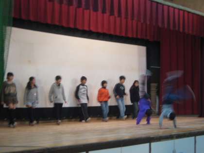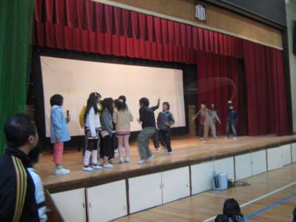 朝会のあと、掃除の時間と並行して実施している「きらきらタイム」の発表会をしました。今日は2・4・6年生の発表です。大縄跳びや側転やダンスなど、今までに取り組んできたことを舞台の上で一生懸命発表しました。6年生はダンスと側転やロンダードをうまく組み合わせて、迫力満点のステージで、拍手喝采を浴びていました。