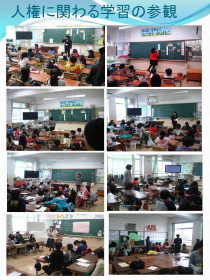 道徳や社会科の授業を通して,「やさしさやおもいやり」「男女平等・障害のある人への差別・外国人差別・同和問題」など我々のみのまわりにある,身近な人権の問題について考える学習を参観して頂きました。