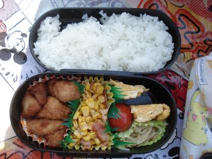 高学年になると,内容重視のお弁当が多いようです。バランスも品数も量も充実しています。