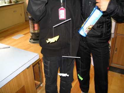 「おもりに使うかざりはどんなのにしようかな?」「うまくつり合わせるためには,支点の位置をどこにすればいいのだろう?」子どもたちは,思考錯誤しながらモビールをつくっていました。