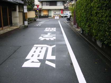 今まで,表示がなかったり目立たないものでしたが,新たに太く明るい道路標示や路側帯の線の修正と新設が行われました。