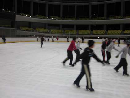 西京極のアクアリーナにスケート教室に行ってきました。初めてすべる児童もいましたが,今日一日で,みんなすごく上手に滑ることができるようになりました。