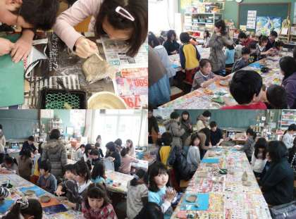 毎年3月に,おやじの会もみなさんのお世話で,「子ども陶芸教室」をおこなっています。