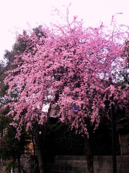 東門を入った北側のしだれ桜が満開です。