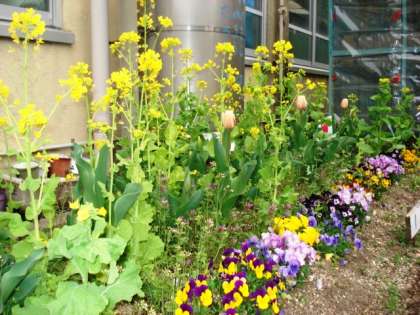 中庭の花壇が花いっぱいです。