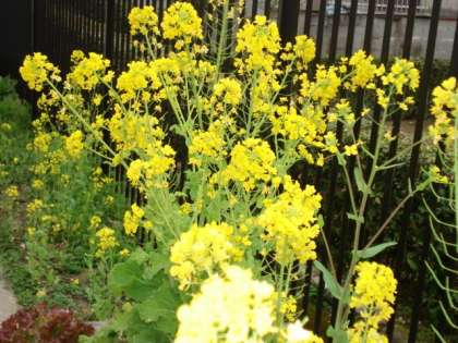 体育館西の花壇のアブラナがいっぱい咲きました。