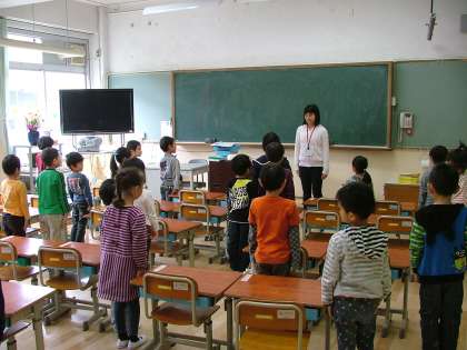 1年生が授業中の約束を聞いてがんばっています。