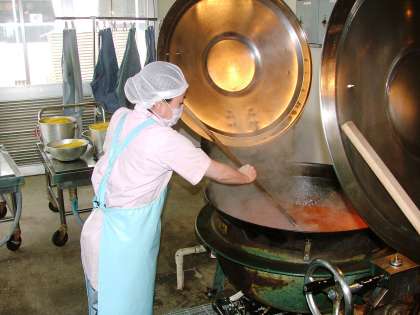 今日は久しぶりの給食なので,朝から懸命に調理をしていました。