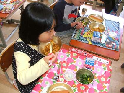 1年生にとって初めての給食です。